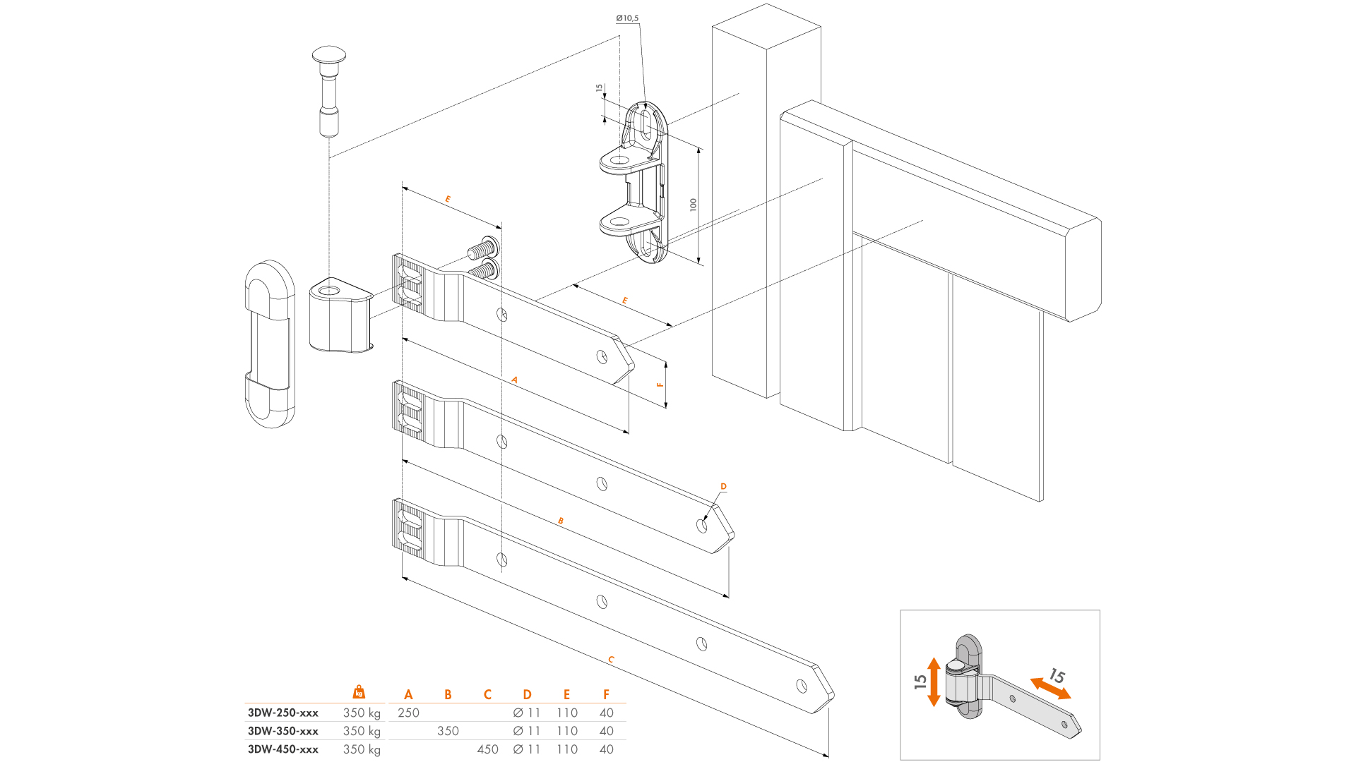 180° hinge for wooden gates that are reversable for LH or RH Gates, fully adjustable in both height and vertical alignment and vandalism proof. Available in a Hot-Dip Galvanised or Satin Stainless Steel finish